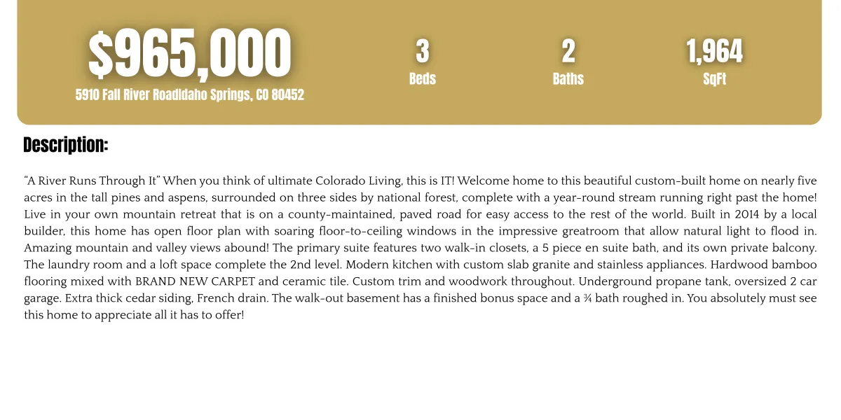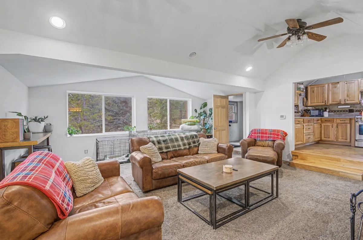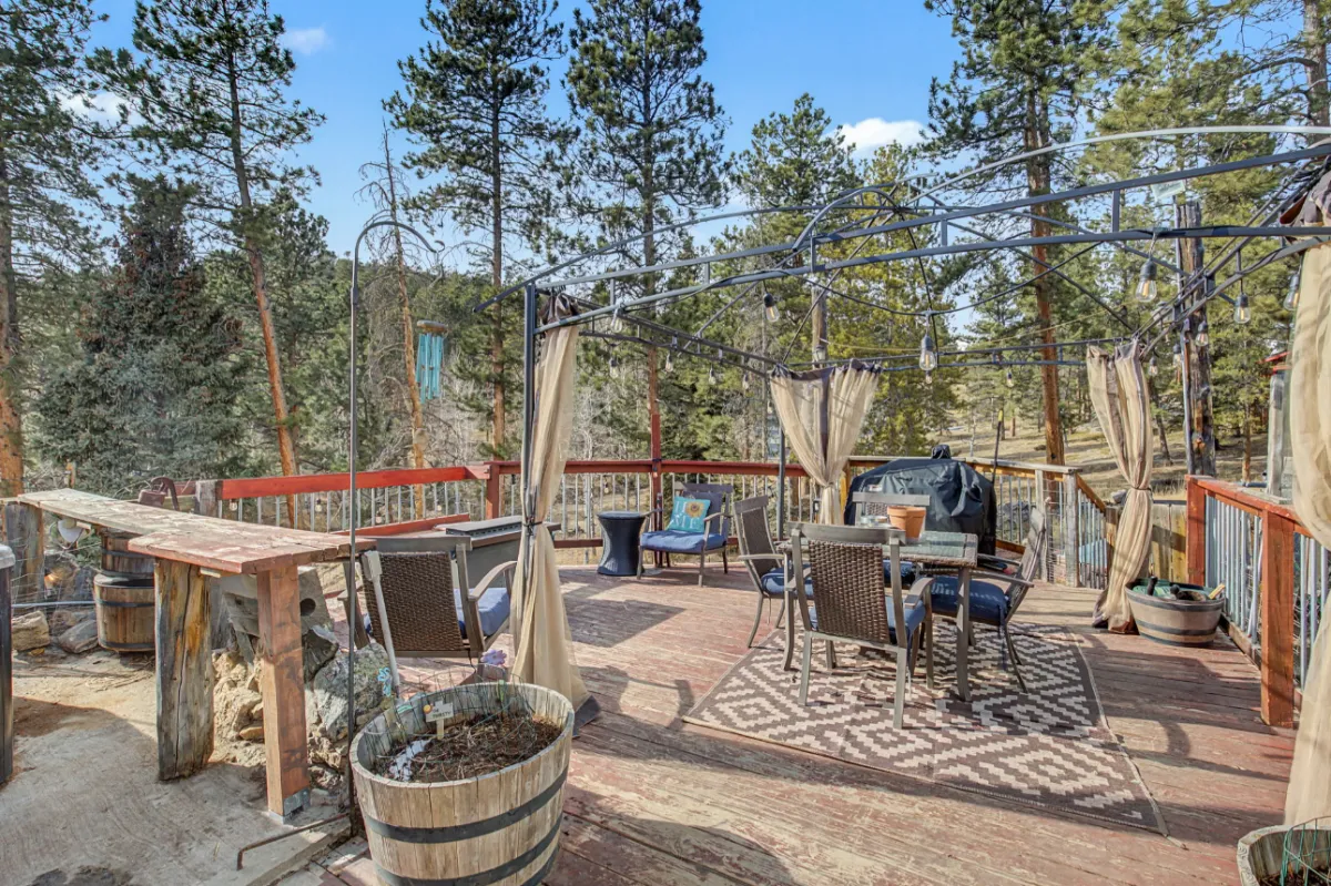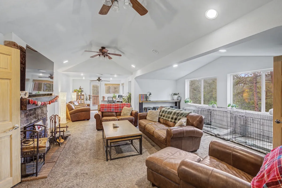 Tucked among the pines in sought-after Shadow Mountain, this Colorado mountain retreat offers peaceful acreage, modern upgrades, and flexible living. Set on 1.43 private acres in Conifer, this 3-bedroom, 2-bath home blends open-concept comfort with mountain character, refreshed to feel light, bright, and move-in ready. The renovated living area features new windows that flood the space with natural light and frame mountain views. The open layout flows into a cozy eat-in kitchen with hardwood floors, oak cabinetry, decorative tile accents, and a new electric fireplace installation underway. The living room fireplace was replaced in 2023 to meet code, offering charm with peace of mind. The primary suite includes French doors to a private deck, perfect for morning coffee in the trees. The main bath features a new shower insert (2025). Upstairs, a separate entrance provides flexibility for guests, rental income, or a home office, complete with a its own half-bath. Outdoor living truly shines here. Two decks create ideal entertaining and relaxation spaces, while the newer hot tub (2024) invites year-round enjoyment. The fenced acreage includes raised garden beds, a chicken coop, and multiple outbuildings - shed, carport, and additional storage or creative space. With natural gas and electric in place, you enjoy rural serenity without sacrificing convenience. Located with easy access to Conifer amenities and commuting routes, yet surrounded by wildlife and views. If you're searching for a Colorado mountain home with acreage, usable land, updates, and income potential - this is it. Schedule your private showing today.